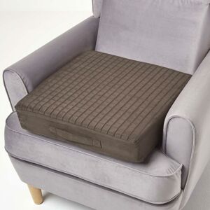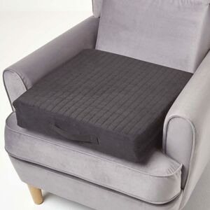 Faux suede armchair booster cushion with a removable cover and orthopaedic foam for additional support when sitting. Filled with specially developed orthopaedic foam (33/190) typically used in sofas and chairs, this booster cushion will retain its shape over time and provide lasting support throughout regular use. This specially designed foam is designed to help support the lower back, hips and knees when sitting or standing from an armchair. Ideal for those who are recovering from surgery, the elderly or pregnant women, this booster cushion will help provide support when sitting and can even be used to refresh old and tired armchairs. With a soft faux suede quilted removable cover, lined with a thick 170 GSM polyester for added comfort, that zips down two adjacent sides, this cover can easily be removed, washed and the foam re-inserted with ease. Keep this cover clean by washed at home to remove stains and keep your armchairs fresh. These covers can also be removed to mix and match different colours along your sofa for a style makeover. Booster cushions are available as a complete cushion including cover and foam, individual covers are also sold separately. Part of Homescapes booster cushion collection dining chair, two-seater, three-seater and travel cushions are available in a range of colours and sizes. Measures: 50 x 50 x 10 cm. Features carry handle. Homescapes Suede Orthopaedic Foam Armchair Booster Cushion in Grey Size: 50cm x 50cm