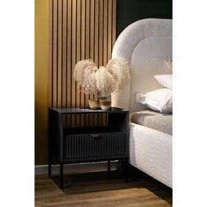 Are you looking for an elegant and practical bedside cabinet with storage space? The Auriville bedside cabinet is just the thing! The Auriville bedside cabinet with drawer will be the secret interior highlight in your bedroom. The linear shape combines stylishly with the ribbed drawer front and slim metal frame. The gold-colored handle strip sets elegant highlights and makes it easy to store things away. This bedside cabinet not only proves to be a decorative furnishing idea, but also a practical storage solution: the top shelf can be used to store a lamp, reading material, a glass of water and an alarm clock, while tissues and other items can be discreetly stored in the drawer. Product features: Elegant bedside cabinet with textured front and gold-colored handle strip The straightforward, minimalist design fits perfectly into modern interiors An open compartment and drawer provide storage space The metal feet are fitted with floor-friendly glides to protect your floor from scratches The body is made from robust and scratch-resistant laminated boards Color: Black Leg color: Black Height: 56 cm Width: 54 cm Depth: 39 cm Height of the legs: 20 cm Number of drawers: 1 Body material: Laminated board Finish: Matt Front material: MDF Leg material: Powder-coated steel Edge protection: ABS edge Lighting: none Number of packages: 2 Assembly: Self-assembly Fairmont Park
