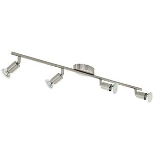 Specification Eglo Buzz-Led - 4 Light Wall / Ceiling Spotlight Bar with Satin Nickel Finish, GU10 Finish: Satin Nickel Material: Steel IP Rating: IP20 Length (cm): 68.5 Width (cm): 6.5 No. of Lights: 4 Lamp Type: GU10 Kelvin: 3000 Dimmable: Yes Wattage (max): 4 x 3W Weight (kg): 0.955 Class: 1 (Earthed) Description This spotlight range has a simple yet modern design which will provide plenty of light to its surroundings. The fittings are available in single, double, three light, four light and six light fittings. The satin nickel finish adds a soft feel to the fitting. The fittings use LED lamps, which provide ample illumination while keeping the energy consumption down to a minimum. Lamps included.