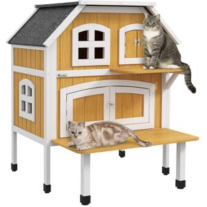 Turn any corner of your outdoor space into a cosy retreat for your pets with the PawHut outdoor cat house. Its elevated, water-resistant design provides a dry, insulated getaway from rain and cold. On sunny days, transform it into an open raised cat bed for a refreshing breeze. It's a wonderful outdoor relaxation spot for pets, no matter the weather. Specifications: ● Colour: Grey ● Material: Plastic, oxford fabric and fleece (100% polyester) ● Overall dimensions: 60H x 62L x 58.5W cm ● Cat house: 40H x 62L x 58.5W cm ● Cat door: 18H x 16.5W cm ● Inside space: 39.5H x 55.5L x 46.5W cm ● Mat: 1H x 55.5L x 46W cm ● Bed: 18.5H x 57L x 49W cm ● Leg height: 18.5H cm ● Ground stake: Φ0.56 cm x 22L cm ● Item label: D30-945V00GY Features: ● Offers all-weather protection with insulated Oxford cloth ● Innovative 2 in 1 design, can be used as shelter or an open cat bed ● Elevated 18.5 cm off the ground to keep pets dry ● Spacious inside with a soft pad for added comfort ● Includes ground stakes