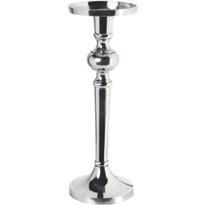 Hurricane Pillar Candle Holder. The elegant candle holder is a decoration that will highlight your interior and make it sparkle. Crafted from glossy metal, the piece comes with a glass shade and a pillar base, filled with crushed, shiny elements that look like zirconia. Match it with a grey, black or white candle which flame will bring a warm, cosy atmosphere into any bedroom or living room. The slender pillar candle holder will also be a perfect decoration of your dining room table, whether for Christmas, romantic dinners or other special occasions. Details: Product Type: Candle Holder Style: Glam General Color: Gold Material Type: Metal Main Material: Glass Finish: Chromed Handmade: No Dimensions: Depth: 13 cm Width: 13 cm Height: 41 cm Weight: 0.9 kg Offer Includes: 1 x Candle Holder Key Features: Suitable for Both Pillar Candles and Tealights, Chic Look, Eye-Catching Accent Piece, Works Great with Many Interior Styles, Trendy High-Gloss Finish Assembly Information: Does Not