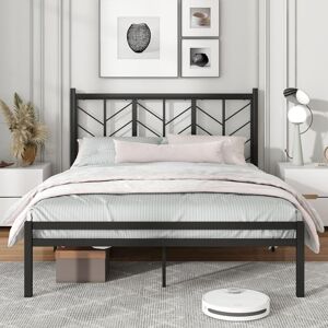 Upgrade your bedroom with style and functionality with this metal slatted platform bed! Constructed with a robust metal frame, this bed frame promises durability and a stable foundation that can support your mattress without the need for a box spring. Together with middle support legs, higher stability is ensured. Elegant headboard and footboard are designed in arc shape to enhance aesthetic appeal. Additionally, the space beneath the bed offers generous under-bed storage, keeping your space tidy and well-organized. The heavy-duty metal platform bed is easy to assemble due to its buckle design. Features: Graceful arc headboard and footboard for perfect visual effect Powder-coated metal slats ensure strong weight capacity 5 middle support legs enhance overall stability The metal beam features noise-free foam for a quiet sleeping night Sufficient under-bed space is easy to store items and clean the room Equipped with non-slip foot pads to prevent scratches Round corners prevent