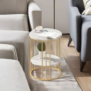 Minimalist: The white marble-patterned sintered stone side table is the perfect choice for a touch of elegance and simplicity. With its stunning marble texture and golden frame design, this table serves as an attractive focal point, adding a clean, minimalist aesthetic to your living room, balcony, or bedroom. Its luxurious and functional design makes it an ideal accompaniment to a modern sofa. Solid Material: This round table is crafted from sintered stone, showcasing all the natural colors and textures. Manufactured under high pressure and extreme heat, sintered stone is incredibly tough, resistant to heat, cold, scratches, chipping, and stains. It offers greater strength, cleanliness, and durability compared to glass and MDF, making it an excellent choice for everyday use. Elegant: Featuring a white textured surface with an impressive artistic quality, the table's natural beauty is timeless and eye-catching. The uniquely-veined sintered stone with a high luster and crystal-like marble appearance reflects light, making your space feel brighter and more spacious. This timeless piece adds elegance and sophistication to any living room. Sturdy: The stylish and charming design, combined with a solid metal structure, ensures strength and stability. Each tier can hold up to 20kg, making it ideal for placing a lamp, a cup of coffee, or your favorite book. Whether in the bathroom, bedroom, or living room, this table offers ample storage to keep your home clutter-free. Simple Assembly: Equipped with a simple structure, easy-to-follow instructions, and a hardware package, this small side table is easy to assemble. The sintered stone surface is stain and scratch-resistant, making it easy to clean and maintain. Additionally, its water-proof feature prevents spills from being absorbed, preserving its integrity and look. Rafaelo Mobilia
