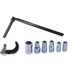[Perfect for Tight Spaces] The basin spanner is designed to reach into hard-to-reach spaces behind the sink to tighten or loosen the mounting nut on the tap or the flexible supply pipe nut attached to of the tap. It is a must-have plumbing tool. [Sink Tap Spanner] A basin spanner is used to install or remove a kitchen or bathroom sink. Because of its long shaft, you can use it in hard-to-reach places under the sink for tight spaces. [Easy to Use] Place the spanner correctly, fit it to the mounting nut, then turn the spanner and tighten. The high leverage handle can be stored in a drawer or toolbox. It is suitable for DIY plumbing projects. [Package Contents] You get a 13mm hexagonal tap spanner with 9mm, 10mm, 11mm, 12mm, 14mm, 17mm replacement valve sleeve adapters, 1 wrench collet. Compatible for most single valve taps. [Usage Tip] Interchangeable heads do not face down. Each adapter is labelled with specifications, find the right adapter when using, insert the unnumbered end into