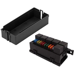 Product Description: 11 Slot Large Capacity Fuse Relay Box - Holds 6 Relays and 11 ATC/ATO Fuses Waterproof relay fuse block is made of flame retardant material, can provide safe and perfect protection for fuses and relays in your engine compartment. , fits most off-road, SUV, UTV, , pickup, truck, boat, etc. Easy to assemble and install, almost gives you a clean and tidy look. All necessary connector pins are included for easy hookup, and the cable opening hole is the outlet for all wires which allows you to tangle them via a main sheath, tightly together and better shields against water splash, dust and debris. Simple Guide 1. Crimp the metal pins to the appropriate wires (wires not included) 2. Insert the knotted into the corresponding slot on the back of the relay box. 3.All wires can come out from the cable opening hole, then close the back cover. Material: ABS color: black Package Contents: 1 x 11 Way Multi-Circuit Assembly Only the above package content, other products are not