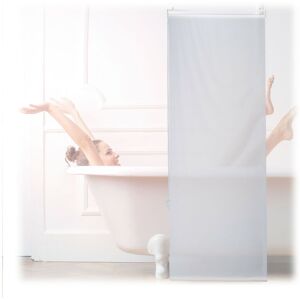 With this bathroom roller blind, you get a modern alternative to the conventional shower curtain at home. The bath roller blind can be attached to the ceiling or clamped to a window, depending on your needs. It prevents unsightly drops of water from soiling your bathroom and also reduces the risk of slipping. When not in use, the dry roller blind can be rolled up to save space. The rope pull roller blind is also visually appealing with its translucent design in grey. Attention: Fasten the chain tightly to the wall to minimise the risk of strangulation for children and animals. If necessary, the roller can be removed and replaced. Shower roller blind in detail - Dimensions rolled up H x D: approx. 6.5 x 4.5 cm - For window width: approx. 1.4 - 2.1 cm - Cable length: approx. 96 cm - Material: PVC, aluminium, plastic - Colour: Grey Bathtub roller blind in various sizes - 60 x 240 cm / fabric width: approx. 55.5 cm / weight: approx. 0.5 kg - 80 x 240 cm / fabric width: approx. 75.5 cm /