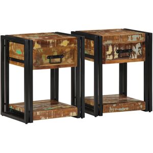 These cool multicolour solid reclaimed wood bedside tables are a fab mix of style and eco-friendliness. They've got a modern vibe and a unique multicoloured finish that fits in with all kinds of decor. Perfect as bedside tables, they're super handy with storage drawers for books, glasses, and your bits and bobs, helping keep your space neat. Made from durable iron and wood, they bring a rustic charm that's built to last. The strong powder-coated iron legs give them a stylish, solid base, making them a great pick for anyone wanting to spruce up their home while being kind to Mother Earth. Williston Forge