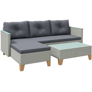 Transform your garden with this Outsunny garden sofa set. Comes with two loveseat sofas and a matching coffee table. The powder coated steel frames ensure strong, supportive cores. Padded cushions keep you comfortable. 'L' shape design is great for corners.Features:Three-piece set: two loveseats and a coffee tableCushions for comfortPowder coated steel frames for strong, supportive coresHDPE board is recyclable, demonstrating ecological responsibilityRemovable and washable covers for hygieneDesigned for garden, terrace, or conservatory enjoyment.