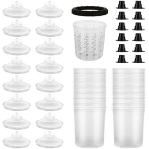 The 25-pack paint mixing cups are easily refillable and the disposable caps and liners can be simply discarded at any time, reducing paint material waste and cleaning solvent waste while eliminating the cost and labor of cleaning traditional metal cups , as well as the need for mixing cups and paint cans. 25 caps with built-in 125 Micrometres fluid filter and curved design promote air circulation, ensuring uniform paint output from the , ensuring uniform paint production. The disposable cup system's external hard cup connector is compatible with PRO-33, PRO-44 and PRO-88 HVLP models to meet your different needs. Featuring a thicker outer cup and precise graduations, you can determine mixing ratios for common paint systems, and is transparent for easy viewing of liquid levels. The sealing plug ensures that the paint cup is not prone to leaking during use. This paint cup liner set includes 25 coasters with a liquid capacity of 20 oz (600 ml), 25 lids, 10 cup sealing plugs and 1 hard cup