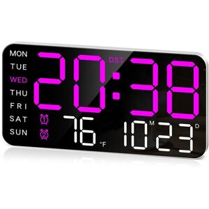 Large LED Display: Measuring 8.4 inches wide and 4.33 inches high, this clock features a 9.5Inch screen for easy readability from any angle or distance. Ideal for the elderly, it doubles as an attractive room decor piece. Dual Alarm and Snooze Functionality: Set two separate alarms to accommodate varying schedules. Long any button for 5 seconds to disable the alarm or short for a 5-minute snooze. Includes a weekday mode for alarms from Monday to Friday or Saturday. Automatic Daylight Saving Time Adjustment: Easily switch to daylight saving time with a long of the "-" button. Features 5 adjustable brightness levels via remote control and an automatic dimming sensor that adjusts to ambient light. Versatile Placement Options: Equipped with two hanging holes for wall mounting and a 78-inch power cord for desktop placement. This multifunctional digital clock is perfect for any living space. Dual Power Mode and Energy Efficiency: Operate continuously using a 5V/1A power adapter and an
