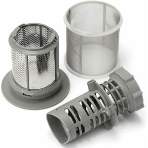 HOW TO REPLACE THE FILTER Gently press the two tabs on the old filter to remove it. They are simply glued to the underside of the metal plate. There are two arrows in the upper part of the filter with which you can set the filter correctly. Insert it and rotate it a bit until the arrow on the filter lines up with the arrow marked on the metal plate. This will help the system is firmly fixed. You can check if the filter drawer system is not loose. It consists of a metal filter and an additional outer mesh for particularly fine screening. This prevents dirt from entering the inner pipes of the dishwasher and prevents clogging of elements such as the water pump. Water COMPLETE FILTER FOR LAVA- BALAY, BOSCH, SIEMENS, NEFF AND OTHER Crockery