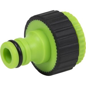 Sealey Soft-Touch Tap Adaptor 1/2"-3/4" Features: Suitable for use with most outdoor taps. The connector securely attaches to the outdoor tap by simply screwing in place. Soft-touch grip to secure tightly with just hand grip. Allows you to then attach hose connector to your outdoor garden tap. Technical Details: • Universal fixture for hose pipes 1/2"-3/4". • Soft-touch rubber grip giving secure fixing by hand grip only. • Hard-wearing ABS plastic. • Unique locking system gives secure fitting to accessories. • Part of a full range of garden hoses, connectors and accessories available from Sealey. • Model No. JS3022 • Model No. JS3022 Additional Information: • GARDEN CONNECTOR - Universal fixture for hose pipes 1/2"-3/4". • SOFT TOUCH - Rubber grip giving secure fixing by hand grip only. • DURABLE - Hard-wearing ABS plastic. • LOCK - Unique locking system gives secure fitting to accessories. • FULL RANGE - Part of a full range of garden hoses, connectors and accessories available from