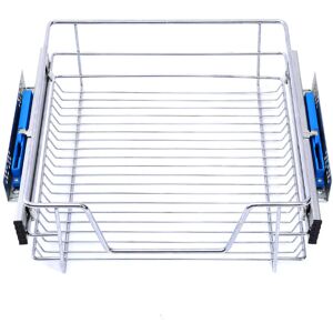 Features: *These pull out storage baskets is supplied for installation into 40cm wide Kitchen Carcass. *These baskets come with a pair of full extension ball bearing runners enabling the basket to be pulled out of the cabinet smoothly and the added benefit of having soft close runners ensuring gentle, safe closing every time . No more bending to access the back of your cabinets, see at a glance all the contents of your cupboard. *Install these metal storage baskets into your kitchen cupboard to maximize storage space and help reach items at the back of the cabinet. *Thanks to the full extension ball bearing runners, these baskets are durable enough for a family or commercial kitchen environment and will easily pull out from their location to create a useful storage solution. *Requires assembly. Specifications: *40cm Baskets Each basket is made to fit perfectly inside a 400mm wide kitchen cabinet or cupboard (external width) Capacity: 15-20kg per basket Basket Dimensions: 440mm D x