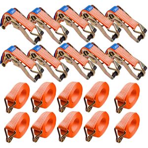 These heavy-duty ratchet tie down straps can be generally used for fixating or fastening cargo for transport or storage. The sturdy and robust web lashings are made of high-quality polyester and has a lashing capacity of 0.4 tonnes each. The lashing straps have been manufactured to meet the EN-12195-2 European standard. In addition, they are equipped with easy-to-use ratchets with quick-release J hooks to maintain tension in transit to ensure the loads stay in place. Delivery includes 10 ratchet tie down straps. Colour: Orange Material: Polyester Length: 6 m Width: 25 mm Lashing capacity: 0.4 tonnes each With 2 J hooks each Meets the EN-12195-2 European standard Delivery includes 10 ratchet tie down straps SKU: 142659 Warning. Not for lifting! EU responsible party Haba Trading B.V. Mary Kingsleystraat 1 5928SK Venlo The Netherlands Compliance-safety@vidaxl.com