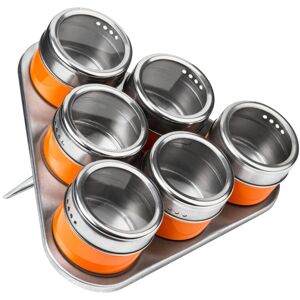 Made from durable stainless steel, the jars have a clear plastic lid allowing you to see the content level, while ensuring they are safely secured and kept fresh for longer. The orange detail will add a touch of colour to your decor. The tray features an adjustable stand so you can have it flat or angled making it easier for you to see what is in each jar.