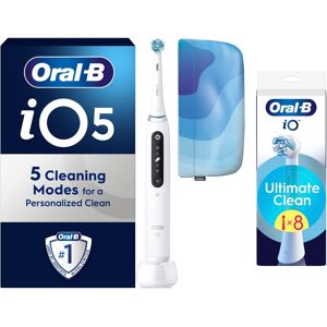 The iO 5 electric toothbrush features Oral-B's best technology combining a dentist-inspired round brush head with micro-vibrating bristles for a professional purifying clean feel at home. The Smart Pressure Sensor helps prevent you from brushing either too hard or too softly to better protect your gums. A.I. Brushing Recognition recognizes your brushing style and guides you to better brushing every day. Connects to the free Oral-B App for real-time brush tracking & guidance across 6 brushing zones. Replace your Oral-B iO toothbrush head every 3 months for the best results.
