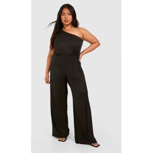 Boohoo Womens Plus Super Soft Basic One Shoulder Beach Jumpsuit - Black - Size 22 Uk