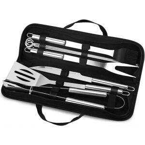 100% STAINLESS STEEL MATERIAL - It is made of high quality stainless steel and well polished. The stainless steel grill accessories set is sturdy and durable and will not bend, break or rust. Easy to clean after use, it is suitable for outdoor grilling with your family or friends. BECOME A GRILL MASTER - With these grill tools, any type of food can be manipulated perfectly. Whether it is short or long fried, fish or meat as well as grilled vegetables can be grilled to perfection. CONVENIENT TO STORE AND TRANSPORT - The grill tool set is equipped with a sturdy carrying bag that is easy to attach. Keep tools conveniently organized and easy to store. You can take them anywhere and grill at any time. PROFESSIONAL QUALITY ALSO AS A GIFT - The complete grill cutlery is not only of absolute professional quality and comfortable to use, but also a real eye-catcher and a great (birthday) gift so that you can part with it.