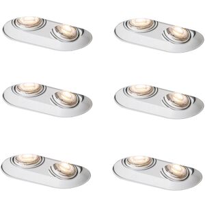 QAZQA Set of 6 Rounded Recessed Spotlights Black GU10 50mm 2-Light - Hubs Twice as stylish, twice as flexible â meet the Hubs 2-light recessed spotlight in deep black. This set of 6 rounded spotlights combines modern design with powerful functionality. Each fixture accommodates two GU10 light sources, perfectly positioned in an elegant oval housing that protrudes subtly from the ceiling for a refined look. The black finish provides a bold contrast and a luxurious look, while the double spotlights ensure optimal light distribution â ideal for larger spaces such as living rooms, kitchens or offices. Ready to give your interior a contemporary boost? Choose the dynamics and class of Hubs and let your space be illuminated twice as well! Bulb holder: GU10 . Max 2 x 10 W, 230 V Suitable for: LED Connecting voltage: 220V/230V Protection class: IP20 Dimmable, dimmer not included,No, without cord and plug Lightsource: Exclusive The QAZQA Set of 6 Rounded Recessed Spotlights Black GU10 50mm
