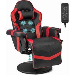 This massage gaming chair will surely make your home and office life more convenient and comfortable. The massage function is provided for you to alleviate fatigue and loose muscles. The recline function offers a range of tilt angles from 110 degree to 130 degree and the height of gaming chair can also be adjusted, which can satisfy your different needs as office chair or gaming chair. Besides, the footrest control lever makes it easy to expand the footrest when you want to relax yourself. Meanwhile, sponge padded seat and premium PU leather keep a good balance between firm support and good breathability, ensuring comfortable sitting feeling. Bring this upgraded height adjustable gaming chair home which strikes perfect balance between functionality and stylish design. Costway Massage Gaming Chair Height Adjustable Swivel Racing Video Gaming Recliner in Grey
