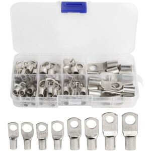 WHAT CAN YOU GET:A set of 8 types of SC cold junction terminals, a total of 60 pieces, they are sorted and packed in a plastic box. HUATE QUALITY:All SC ring terminals are made of 100% annealed electrolytic copper for maximum conductivity, with a tin-plated copper surface for corrosion protection. SAFETY:The sturdy structure terminal has strong temperature resistance. The closed design of the cable lugs ensures the security of the connection; the standard flared opening makes it easy to insert wires. STANDARD TERMINAL:Cable lug kit complies with all European standards. Generally used in automobiles, batteries, machinery and equipment. APPLICATION:Tin-plated copper ring terminals are ideal for outdoor installations, such as power grids, aviation, ships, high-speed trains, electrical manufacturing and automotive aftermarket, etc. Specification: Total Quantity: 60 Pcs Material: Tin Plated Copper Box Size: 14.5 x 6.5 x 2cm Sizes and Quantity: SC6-6【10 PCS】Cable Diameter: 6m㎡, Screw Hole