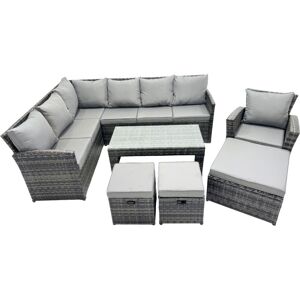 Built to last! This heavy-duty rattan sofa set features a rust-proof steel frame and all-weather PE wicker, designed to withstand sun, rain, and wind. A perfect, low-maintenance choice for outdoor relaxation. Set dimensions: •1 x 3 Seater sofa with double armrest: 162L x 67W x 79H cm(Fully Assembled) •1 x 3 Seater sofa with single armrest: 157L x 67W x 79H cm (Semi-Assembled) •1 x Fire pit dining table: 140L x 80W x 70H cm •1 x Big Footstool :65L x 65W x 34H cm •2 x Small fully assembled footstools :40L x 40W x 34H cm •1 x Chair: 74W x 69D x 79H cm Dark Grey Mixed rattan with dark grey fabric .Color may vary due to light or monitor .we are unable to return the item due to this problem .Please consult before purchase if you have requirment on color saturation. Items Comes Flat Packed And Easy to Assemble,Sturdy Galvanized Steel Tube Metal Frames With Powder Coating To Prevent Rust.Ergonomic High Back And Declining Design For Extra Comfort. Flat PE Rattan Completely Made By Hand, 5mm