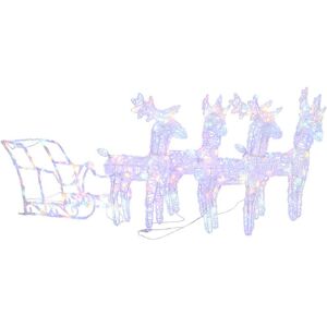 Decorate your garden or house with this unique collection. This 2 reindeers and sleigh Christmas decoration paired with warm white light brings out the true beauty in the season! Crafted from acrylic and PVC around a steel frame, this lighted reindeer is perfectly weather-resistant over the holiday season. It is pre-lit with 160 LED lights, which are energy-efficient and long-lasting. Designed with 8 different lighting effects: a combination of all the effects, slow-glow, twinkle/flash, in wave, chasing/running water, sequential, steady on and slow fade, it beautifully lights up and creates a magical holiday atmosphere. Note: The product has a USB connector, but the certified 5V USB power source is not included. The included USB is not waterproof so this part has to avoid the water, but thanks to the 5 m cable the decoration can be used outdoors as the cable and product are waterproof. The Seasonal Aisle Colour: White