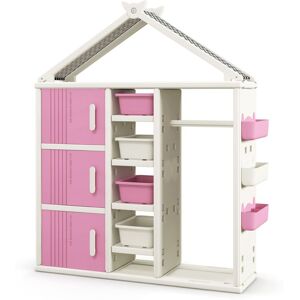 Are you looking for extra storage space for your kids to store coats, dresses and toys? This easy-to-assemble kids closet will meet your needs. It features a sturdy rod for hanging clothes and 4 open layers with boxes, 3 enclosed cubes as well as 3 side baskets for storing toys, books, shoes and so on. Made of premium HDPE, the whole storage organizer closet is stable and has good weight capacity. Meanwhile, it's safe for kids to use thanks to its anti-toppling device which can attach it to the wall tightly. Besides, its house-like appearance and bright colors add loveliness to your kid's room, making your child fall in love with tidying up. Multiple Storage Options: This kids wardrobe features a sturdy rod for hanging clothes while 4 adjustable open layers with 4 storage bins and 3 enclosed cubes with doors are designed for offering you large storage space for shoes, balls or toys, etc. Moreover, 3 side baskets, which are adjustable according to the height of your kids, also provide