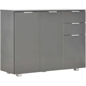Keep everything nice and tidy in your living room with our elegant sideboard! This practical sideboard will satisfy your various requirements and be an ideal complement in your room. Made of engineered wood with a high gloss white finish, the drawer cabinet exudes a refined look and is exceedingly stable and durable. Additionally, equipped with 2 drawers and 3 doors, the sideboard provides ample storage space for your various items, making your room tidy and clean. This high gloss storage cabinet is easy to clean. Upgrade your interior decor to the next level with our elegant sideboard! Colour: Grey Material: Engineered wood with a high gloss finish Dimensions: 107 x 35 x 80.5 cm (W x D x H) With 2 drawers and 3 doorsMax. load capacity (total): 60 kg Max. load capacity (top): 15 kg Max. load capacity (left compartment): 10 kg Max. load capacity (middle compartment): 15 kg Max. load capacity (right compartment): 5 kg Max. load capacity per drawer: 5 kg WARNING: In order to prevent