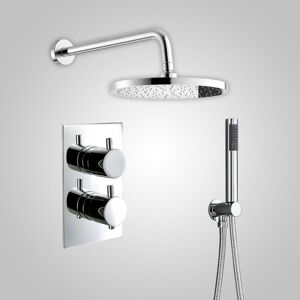 Description Constructed from solid brass, with modern ceramic disc technology, our stylish concealed thermostatic shower mixer valve is perfect for creating a new minimalist look to your bathroom. The mixer valve mounts on to the wall making your shower look less cluttered and bulky and the slim rectangular back plate neatly conceals all pipe work, adding an exceptional sleek finish. With our built-in anti-scalding devices in all of our thermostatic mixer valves, you can have piece of mind knowing that you'll never have to worry about any drastic drops in temperature. Thermostatic Valve Top dial - controls water to 2 outlet diverters Bottom dial - temperature control High Quality Design Chrome Finish Thermostatically controlled Manufactured from highly durable brass Operating range 20 - 50 deg C with 38 deg C safety button Built in non return valves to prevent back flow and filters to protect the thermostatic mechanism Chosen temperature maintained to within +/-1ºC Pre-set maximum