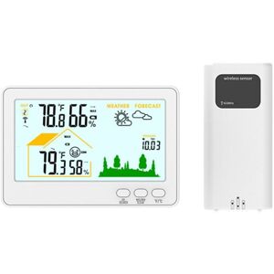 [TWO IN ONE DESIGN] 2-1 Indoor Thermometer & Hygrometer is great to keep track of the temperature and humidity, temperature measurement range: -40~140°F (-40~60°C), Accuracy: +/-2°C; Humidity measurement range: 0~100%RH, Accuracy: +/-7% RH (40~70%RH). [EASY TO READ] The Humidity Gauge is handcrafted from solid plastic with fine and clear dial, easy to read the scale. It is easily readable from a distance because of the large display in 10inch Diameter . The temperature shows both °C and °F readings. [GOOD FOR HEALTH] Thermometer hygrometer monitor ensures proper indoor / outdoor temperature and humidity control which is important to skin, allergen and other . [NO BATTERY REQUIRED] Mechanical thermometer and hygrometer has a longer life expectancy in use, no battery required. Avoid violent vibration and hitting, and do not disassemble by yourself. [WIDE APPLICATIONS] The weather thermometer doesn't take up a lot of space, just hang it . Perfect for houses, offices, workshops, schools,