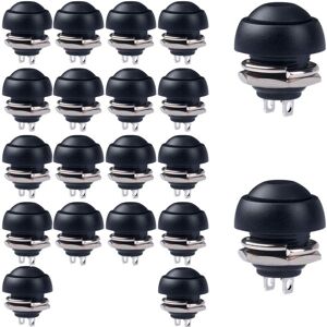 Rated voltage: AC 250V/1.5A 125V/3A, Size: 3.0 x 1.6cm/1.2 x 0.63inch, 2 pins. Press the button, power on; release it, power off. Mini push button switch made of solid plastic and alloy material, high precision mechanism design provides perfect operation and long service life. Screw design makes installation easier, comes with 20pcs nut and 20pcs spacer to make the installation more stable. Suitable for cars, trucks, ignition systems, home doorbell, car horn, small appliances, light decoration, etc. Package included 20pcs 12mm Momentary Push Button Switch Black