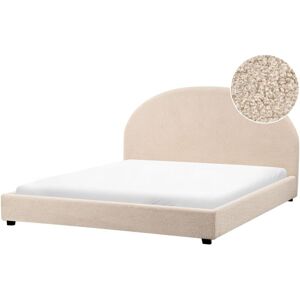 Minimalist Bed with Boucle Upholstery. Elevate the look of your bedroom with this stylish, minimalist bed. Its pleasant to touch boucle upholstery in beige colour, perfectly matches any interior and will surely draw attention. The slatted frame, crafted out of solid wood, ensures good, relaxing sleep and proper body weight distribution. The whole construction is complemented by black legs, which add an elegant touch to the bed and ensure stability. Details: Product Type: Double Bed Style: Glam General Color: Beige, Black Shade: Light Beige Material Type: Fabric Main Material: Boucle Additional Material: Iron Material Composition: 100% Polyester Fabric Upholstered Back: No Dimensions: Headrest Dimensions: 153x89 Width: 153 cm Length: 215 cm Height: 109 cm Sleeping Surface: 140x200 cm Weight: 32 kg Weight Capacity: 150 kg Offer Includes: 1 x Bed Frame, 1 x Slatted Frame (26 Sprung Slats), Not Included: Mattress, Bedding and Cushions Key Features: Shock-absorbing Slatted Bed Base Offers