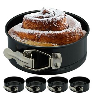 If you have a sudden craving for cake, these mini cake tins with a diameter of 12 cm are perfect. Whether yeast, mixed or sponge dough - with the baking tins you can give free rein to your creativity and conjure up delicious little tarts and cakes in small format. The versatile cake baking tins are also suitable for the top layer of a multi-tier cake. Thanks to the non-stick coating, the baked goods can be easily removed from the cake springform pan after baking. Springform pan small in detail - Dimensions H x D: approx. 4.5 x 12 cm - Weight per tin: approx. 100 g - Material: Carbon steel - Colour: Black Round mini cake tin in a set of 5 - For cakes, tartlets and much more in small size - Easy to remove thanks to non-stick coating - Ideal for couples and single households - Also as top layer of multi-tiered baked goods - No falling - open the ring to remove - Moulds easy to clean by hand Included in delivery - 5x mini springform pans - Decorative items are not included