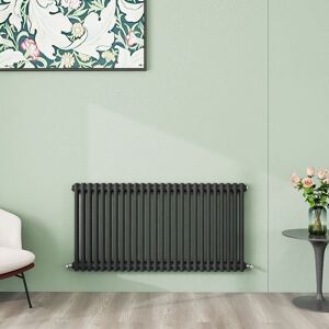 Aica Sanitaire - aica 600x1190mm 2 Column Horizontal Black Radiator Central Heating Cast Iron Style