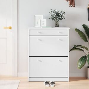 Keep your shoes away from dust and clutter to create a tidy environment for your home with this wooden shoe cabinet! Solid pine wood: Solid pine wood is a beautiful natural material. Pine wood has a straight grain, and the knots give the material its signature, rustic look. Made of solid pine wood, the shoe storage is durable and sturdy. Ample storage space: This shoe storage cabinet is designed with 2 flip doors and 1 drawer to keep your shoes and small things well organised. Wooden knobs: The shoe cupboard comes with wooden knobs that make it easy to open and close the shoe storage cabinet while adding extra beauty. Easy to maintain: The shoe organiser is easy to clean with a damp cloth and requires less maintenance. Warning: To prevent it being overturned, this product must be used with the provided wall attachment device. Colour: White Material: Solid pine wood Dimensions: 77 x 35 x 96 cm (W x D x H) Drawer outer size: 70 x 12 cm (L x W) Drawer inner dimensions: 65 x 28.5 x 8.5 cm
