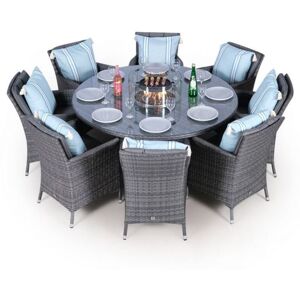 SAVANNAH 4 SEATER SQUARE RATTAN FIRE PIT DINING SET MAIN FEATURES UV resistant flat rattan weave 110cm square dining table with 8mm tempered glass top (minimal assembly required) Firepit system with electronic control panel Tempered glass safety surround Long lustre decorative fire glass BBQ griddle included 4 x luxury dining chairs with padded seat and back (fully assembled) All weather outdoor cover included Rust proof aluminium frames Dual density seat and back cushions Cushions feature piped edges Removable seat covers for easy maintenance 5 year frame warranty ADD WARMTH TO YOUR OUTDOOR SPACE WITH THE SAVANNAH FIRE PIT GARDEN SET. Consisting of a feature packed 110cm gas fire pit table, 4 luxury padded dining chairs, BBQ griddle and an all weather cover this set provides everything you need to enjoy alfresco family meals in comfort and style. The Savannah range sets itself apart from the rest with its luxury rattan dining chairs featuring wide curved armrests and contoured back