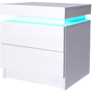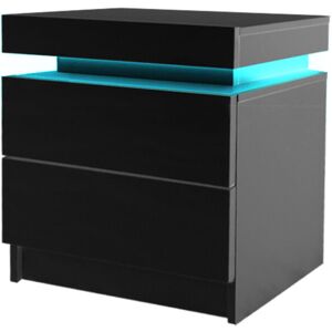 Description Our Levede bedside table comes with built-in LED lighting that can be customised into 16 different colours to suit your preference. Not only will the table create a beautiful ambience, it will also save you from buying extra bedside lamps or nightlights. Two deep drawers sliding on smooth anti-rust runners provide ample storage space. What’s more, there is also a top storage compartment that opens with a lift-up lid like a treasure trunk, which you can fittingly fill with your own personal treasures. Better still, the handle-free design gives it a modern vibe that stands out from the mundane. Quality made with 15mm thick melamine particle board and UV high gloss finish, the bedside table is durable and easy to maintain. Choose from one or two to lighten up your dreams in more ways than one. Key Features: Modern and stylish Solid construction Ample storage High gloss finish 16 Customisable LED light USB powered Smooth runner Strong hinges Anti-scratch feet Easy assembly
