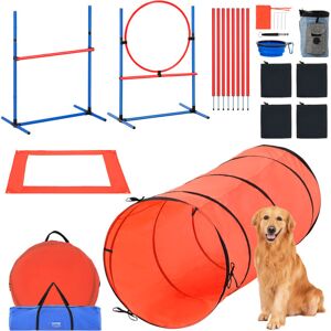 Features & Details Enhance Your Dog’s Agility: Our set includes 27.95-inch wide jump rods, a 23.62-inch diameter jump ring, 6 base poles, a 78.74-inch long tunnel, and a pause box, designed to improve your dog’s agility and obedience while strengthening your bond in a fun and engaging way. High Quality and Durable: The poles are made from sturdy PVC, ensuring stability and resistance to deformation. The jump ring features reinforced rods and a 3-point clip system to minimize wobbling, while the foldable tunnel is crafted from tear-resistant polyester with side pockets for added stability. Lightweight and Easy Installation: Set up is tool-free, using connectors and clips for easy assembly and disassembly in minutes. Adjustable clips on the jump rods and ring allow for customizable training heights. The lightweight design and included storage bags make it convenient to transport and use indoors or outdoors. What You Will Get: Instruction manual x1, Whistle x1, Foldable bowl x1, Jump