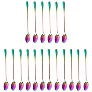 color: Rainbow color size: 19.4 x 3cm Material: stainless steel Package include: 12 x Stainless Steel Coffee Teaspoons(Does not contain other things) Only the above package content, other products are not included. Note: Light and different displays may cause the color of the item in the picture a little different from the real thing. The measurement allowed error is +/- 1-3cm.