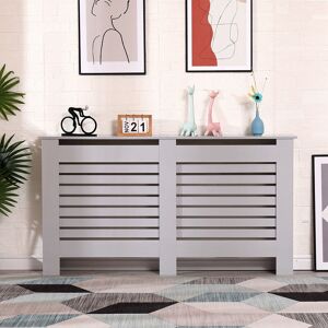 Size: 151.5(L)X19(W)X82(H)cm Internal Dimensions:L146.5XW16.5XH80cm Color: high gloss grey Description: These elegant radiator covers feature a sleek high gloss grey finish and a modern vertical slat design. The durable construction is made from particle board topped with a scratch-resistant UV laminate panel. Home assembly with flat pack furniture design. All hardware and instructions included Elevate your room decor while disguising outdated radiators with these contemporary grey radiator covers. The smooth high gloss finish adds a touch of modern style to any space. Protect little fingers from hot radiators and prevent furniture damage with this essential home accessory.