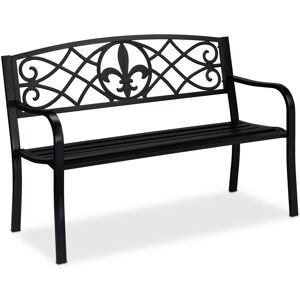 Enjoy warm summer days sitting comfortably on this decorative garden bench. Placed in your own garden, the black bench looks particularly striking between flower beds or by the garden pond. City dwellers can also enjoy this sturdy bench on their balcony. The patio bench is ideal for 2 to 3 people. The Fleur de Lis motif on the backrest completes the inviting design of this seating option. Garden bench in detail - Overall dimensions H x W x D: approx. 86 x 127 x 60 cm - Seat dimensions W x D: approx. 121 x 41 cm - Seat height: approx. 41 cm - Load capacity: approx. 220 kg - Weight: approx. 13.4 kg - Material: steel, cast iron - Colour: black Sturdy balcony bench for 2 people - Spacious two-seater for relaxing moments - For added comfort, consider using a seat cushion - The perfect seating for your garden or patio - Featuring a stylised Fleur de Lis on the backrest - Quick and easy assembly of the bench Included in Delivery - 1x bench in parts - With assembly materials and instructions
