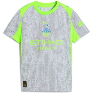 Man City are a symbol of the people, the culture, and the humor of Manchester. That's why the 25/26 Third Kit is a tribute to Mancunian weather, designed for those who carry City in their hearts, rain or shine. (Though, let's be honest, mostly rain.)COMFORT: dryCELL sweat-wicking technology designed to keep you dry and comfortable.RE:FIBRE: Contains at least 95% recycled textile waste and other used materials made of polyester.Features:- Regular fit.- Main material type: Double face jacquard.- Short sleeves.- Crew neck.- Official team branding details.- PUMA Youth: Recommended for older kids between 8 and 16 years.Composition:- Shell: 100% polyester.- Rib: 100% polyester.Care Instructions:- Do not iron print.- Use only mild detergent.- Do not dry clean.- Exclusive of Decoration.- Wash with similar colours.- Wash and iron inside out.