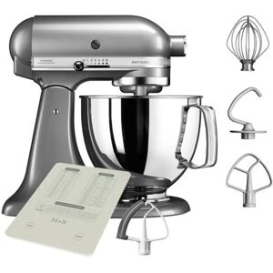 FREE Mary Berry At Home Digital Scale Worth £24.95 & A FREE KitchenAid Artisan Flex Edge Beater Worth £49.00 The KitchenAid KSM125 Artisan 4.8L Tilt-Head Stand Mixer finished in Contour Silver. The instantly recognisable design of the KitchenAid Artisan Mixer can truly be described as iconic. The sweeping curves and rounded head give it a presence in the kitchen that other mixers can only dream of. It's not all about the looks with this mixer though. Its full metal construction is robust and stable and the direct drive motor provides plenty of power to the attachments or accessories. The stand mixer's original planetary action eliminates the need to rotate the bowl by spinning the beater clockwise and the shaft counter-clockwise, moving the beater to the edge of the bowl at 67 different points. A wide range of attachments are available for the KitchenAid Artisan mixer, taking it way beyond being just a mixer. These are easily attached via the multi-purpose attachment hub. The KitchenAid KSM125 Artisan mixer comes with these standard accessories in the box: 4.8L STAINLESS STEEL BOWL - can process up to 12 egg whites and 1kg of flour. WIRE WHISK - for whipping up light and airy meringues and cream. DOUGH HOOK - for kneading dough. FLAT BEATER - general purpose mixing beater. For peace of mind the 4.8L Artisan tilt-head mixer comes with a 5 year KitchenAid warranty.