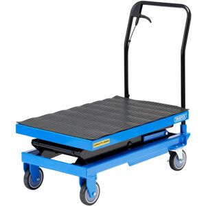 This high lift hydraulic table is certified for up to 300kg. Foot operated one-piece hydraulic pump-up and separate hand operated release. Steel table top with rubber mat prevents damage and slippage. Lifting range - 350-1,285mm. Equipped with safety overload valve. 1,030mm height locking feature. Fitted with two fixed and two swivel composite wheels with brakes, for smooth and easy movement. Manufactured to EN 1494 SpecificationFeatures & Benefits:• Certified for up to 300kg• Foot operated one-piece hydraulic pump-up and separate hand operated release• Steel table top with rubber mat prevents damage and slippage• Lifting range - 350-1,285mm• Equipped with safety overload valve• 1,030mm height locking feature• Fitted with two fixed and two swivel composite wheels, with brakes, for smooth and easy movementSpecifications:Capacity: 300kgHeight: 350-1,285mmTable size: 820 x 520mmMid-lift locking height: 1,030mmLift height: 935mmHandle working height: 930mmWheel diameter: 120mmWeight: 97.5kgContents:1 x Hydraulic High Lift Table, 300kg