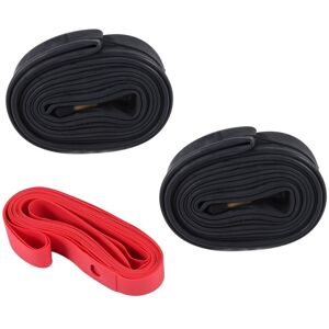Perfect fit: Our bicycle inner tubes fit most road bikes with 700 x 35c, 700 x 38c, 700 x 40c or 700 x 43c tires. Valve type and length: Schrader valve; 48 mm (1.89 inches) with spool cap. Wheel size: 700c Durability: Our bicycle inner tubes are made of high-quality material, which reduces flat heels and has a longer life than ordinary bicycle inner tubes. High-quality rim tape: It is made of high-quality environmentally friendly material to protect the inner tube bicycle from flat feet caused by punctures. colour:Black+red Material:Butyl rubber Package Contents: 2 x Bike Inner Tube 2 x Rim Strip Only the above package content, other products are not included. Note: Light and different displays may cause the color of the item in the picture a little different from the real thing. The measurement allowed error is +/- 1-3cm.