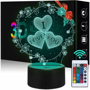 3D illusion lamp - Best Christmas gift for you. Love gift for Christmas This is a 3D illusion lamp who can show up. I love you for 3 love hearts and she surprises your beloved. It is a very creative night light. Ideal Christmas gift for a couple: Exquisite and interesting 3D lamp with optical illusion is a great gift for Christmas, a birthday. Perfect Valentine's Day gift. Remote Control and Smart Touch. The 3D night light has touch control and remote control, depending on your mood and environment, you can choose different modes and colors. Convenient and safe. The light source uses high quality LED, which is soft and uniform, non-glare, non-flickering, dimmable and harmless for eyes. Features: Item Type: 3D LED Night Light. Base Material: ABS. Color of light: 16 color changes. Light source: LED. Weight: 254 g. Scope of delivery: 1 flat acrylic plate (10 x 10 x 18 cm). 1 socket for night lamp. 1 remote control. 1 cable USB. 1 user manual