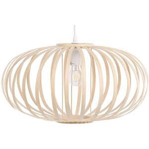 Boho Style Lamp. This unique ambient lamp is going to enhance the look of any living space in your home. Its oval shade, made out of solid bamboo wood, is going to draw attention and refresh your space with boho vibe. Due to it not being closed, the light is not obstructed, which makes it stronger and warmer, illuminating the room with ease. Details: Product Type: Pendant Light Style: Boho General Color: Brown, White Material Type: Wood Main Material: Bamboo Wood Additional Material: Metal Shade Material: Bamboo Wood Adjustable Parts: Cord Length Wattage: Max. 40 W Finish: Matt IP Protection Code: IP 20 Light Bulbs Required: 1 Voltage rating: 230 V (50 Hz) Dimensions: Cord Length: 86 cm Depth: 50 cm Width: 50 cm Height: 120 cm Weight: 1 kg Offer Includes: 1 x Ceiling Lamp, Not Included: Light Bulb Key Features: Openwork Structure Projects Great Shades, The Cord Length May be Adjusted by an Electrician, Works Splendidly as an Ambient Light, Warm, Elegant Colour, Well-Suited for Variety