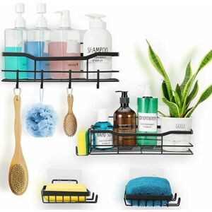 【No Drilling Shower Shelf】The shower shelf has very good adhesion adhesive, which is strong enough to stick without drilling and avoid damaging the wall. Strong adhesive can provide more suction, ensure stability and capacity of the shower holder and avoid falling. 【Easy to Install】Clean walls before installing bathroom shelf dividers. Then just tear off the protective film from the tape, stick the adhesive mat on the clean wall and press to release the air inside. Wait 24 hours and you can hang the bathroom rack. The shelves are easy to install, hold very well, and the finish is elegant. 【Large Capacity】The no-drilling shower caddy mounts in the corners to save space so that we can fit everything we need for hygiene. Large: 32 x 13.5 x 9.5 cm, Medium: 30.5 x 12 x 9.5 cm, Soap dish: 12 x 9.5 x 5cm. The extra soap dish can hold soap and the attached hook can hang bath balls, towels, sponges. It's the best fashion solution for your hanging items. 【Quick Drainage】This bathroom shower