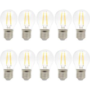 Pack of 10 units Type of base: E27, (Easy installation. Can be easily fitted to replace ordinary E27 halogen bulbs). Power: 2W, ( Save electricity bill.Save more than 90% on lighting electricity bill). Illumination angle (°): 360°, (which is perfect for both residential and commercial lighting). Lighting Color Temperature: Warm White: 2700,(CRI) : 75, (Standard color Temperature,Color is very natural, perfectly silent and aesthetic). Luminous flex: 140LM. Voltage: AC 220V. Quantity: 75 of LEDs: 2pcs LED Lamp; Filament. Material: Metal and Glass. (Solid support. Shock and vibration resistant). Extremely long life. Low maintenance cost due to; reducing the frequency of bulb replacement. Instant full light. Startup time is less than 0.5 s, no need to wait for the lamp to heat up. These Led bulbs are ecological because they do not contain mercury or lead and are economical compared to LED bulbs. traditional bulbs. Applications: 1. Suitable for bedroom bedroom, living room dining room,